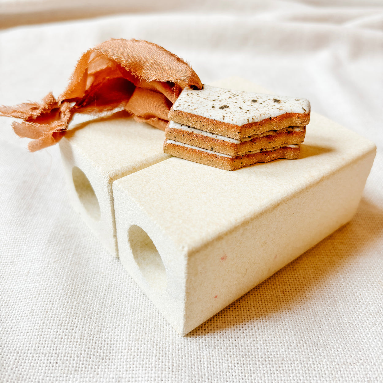 All individual ornaments come with a storage box. The base of the ornament is raw clay stamped with the SarahBeePottery makers mark.