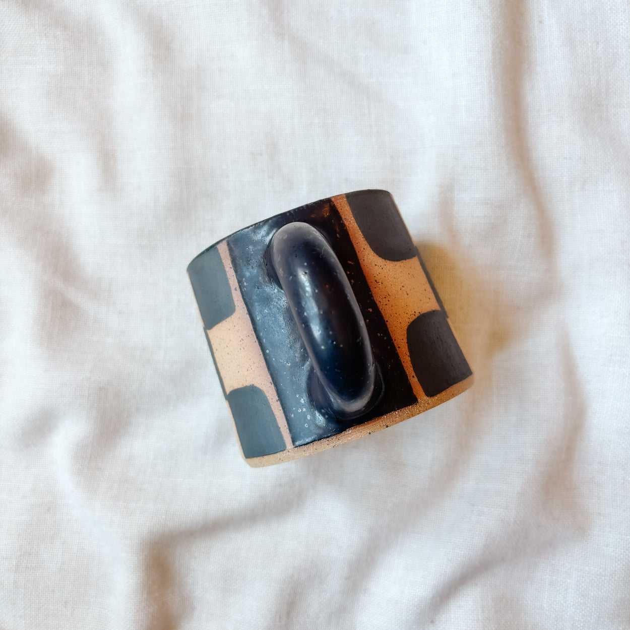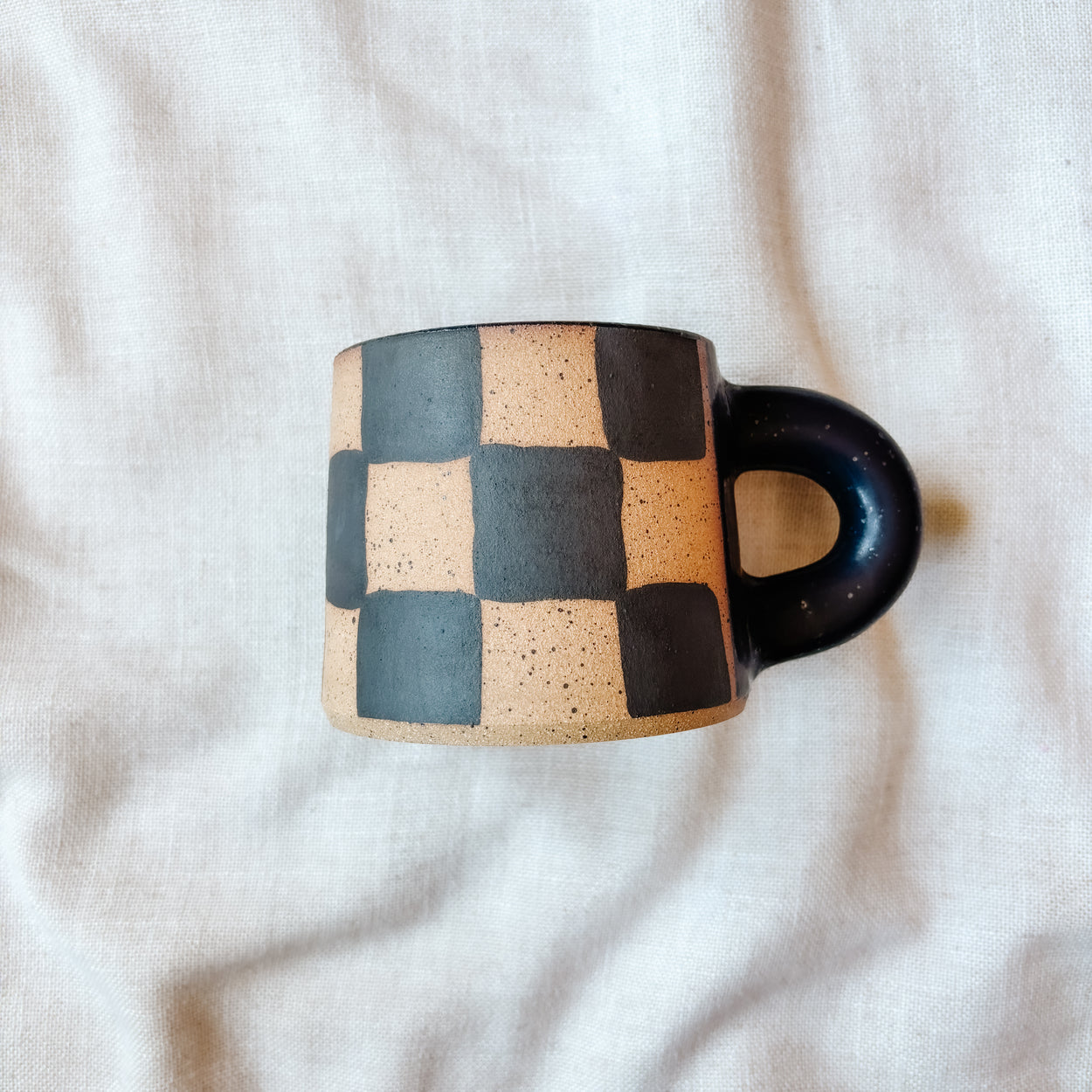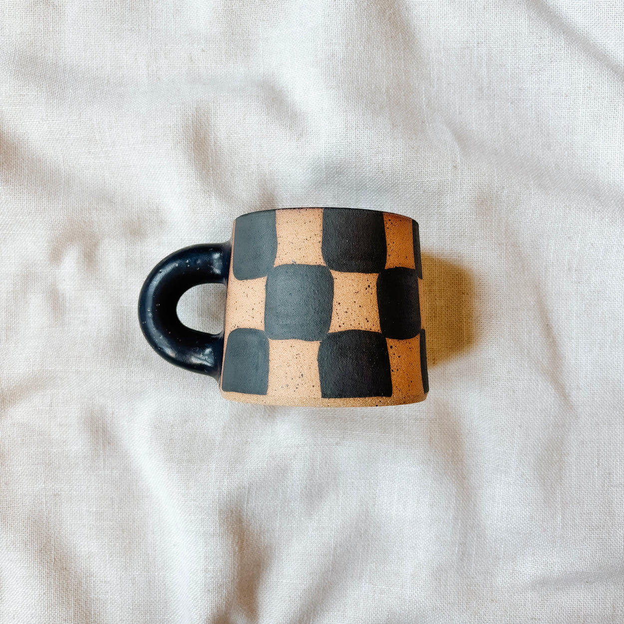 This mug has a very organic hand painted checker print which is unlike all of my previous checker print Pieces which are always extremely carefully placed. This more organic feel represents leaning into change, because not changing is a losing game.
