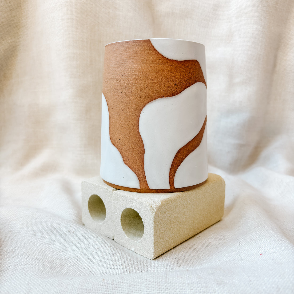 Sensitivity: Please note this mug has a significant amount of unglazed surface area that has the texture of a lightly gritty clay. Due to the abstract designs these unglazed areas may be where your lips meet the mug, or where your hands or thumb rest.